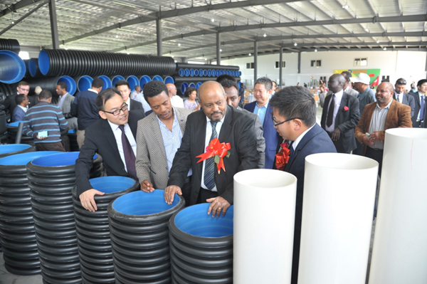此次參加儀式的有中國駐埃塞俄比亞大使館經(jīng)濟(jì)商務(wù)參贊處 商務(wù)參贊劉峪,埃塞俄比亞工業(yè)部國務(wù)部長Tadesse Haile,漢盛集團(tuán)副總經(jīng)理李榮彬,中地海外埃塞公司副總經(jīng)理秦立靜,漢盛集團(tuán)埃塞分公司總經(jīng)理谷學(xué)文和漢盛金楓達(dá)制造有限公司總經(jīng)理胡永軍。除此之外還有投資局高級(jí)官員、化工協(xié)會(huì)負(fù)責(zé)人,以及亞迪斯水局、房建辦、公路局等政府部門高級(jí)官員列席參觀。
